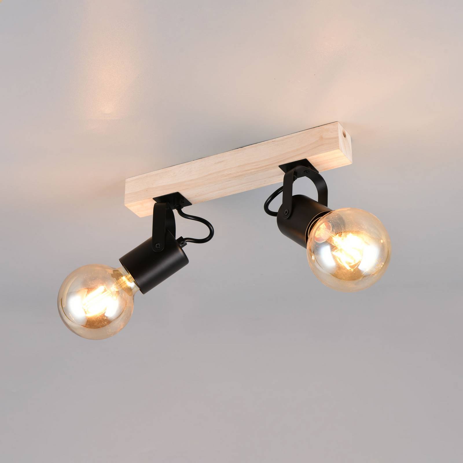 Reality Leuchten Stropní světlo Lynar, černé, dřevo, kov, délka 31 cm, 2 žárovky.