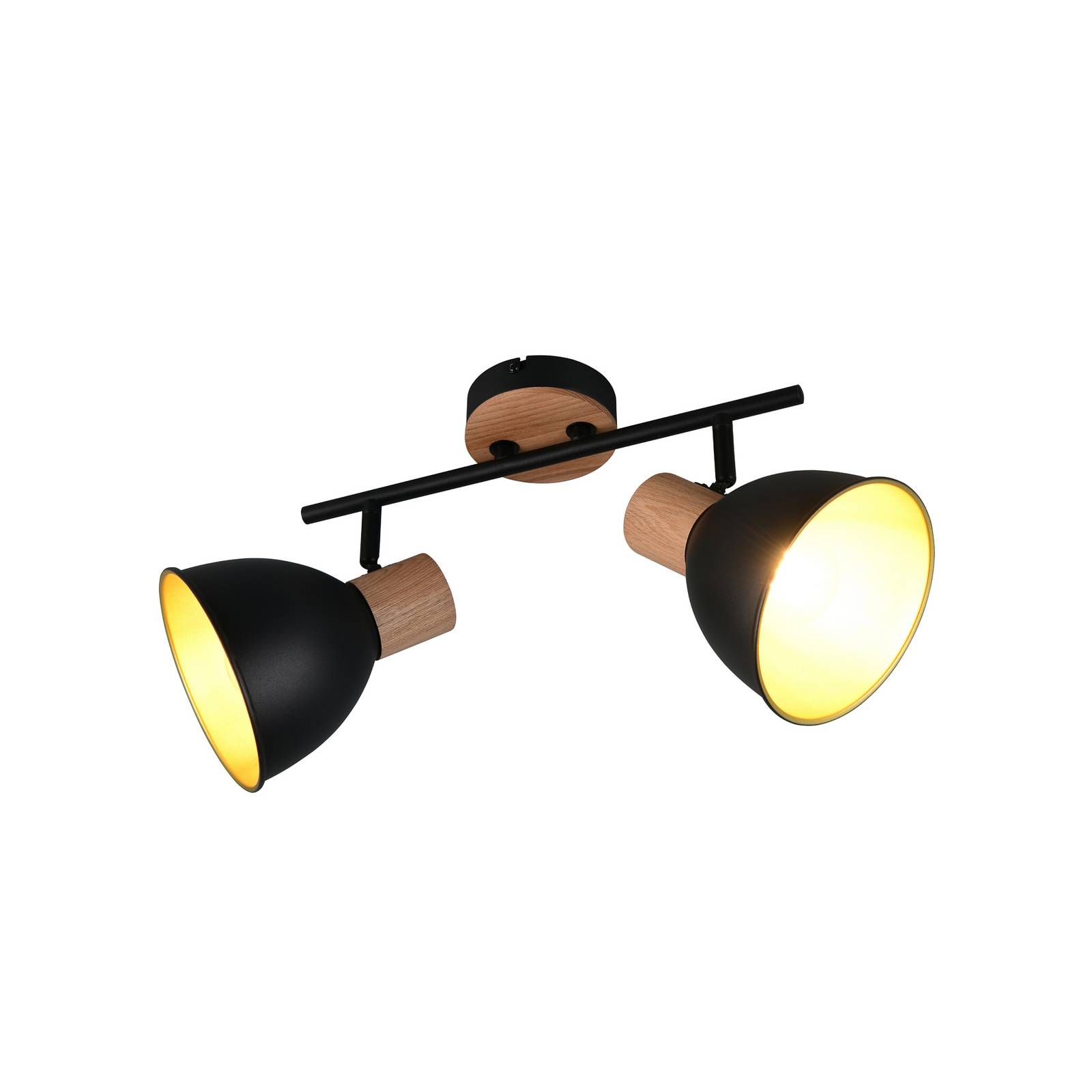 Reality Leuchten Stropní světlo Delume, černé, délka 49 cm, 2-ramenné. Kov/dřevo