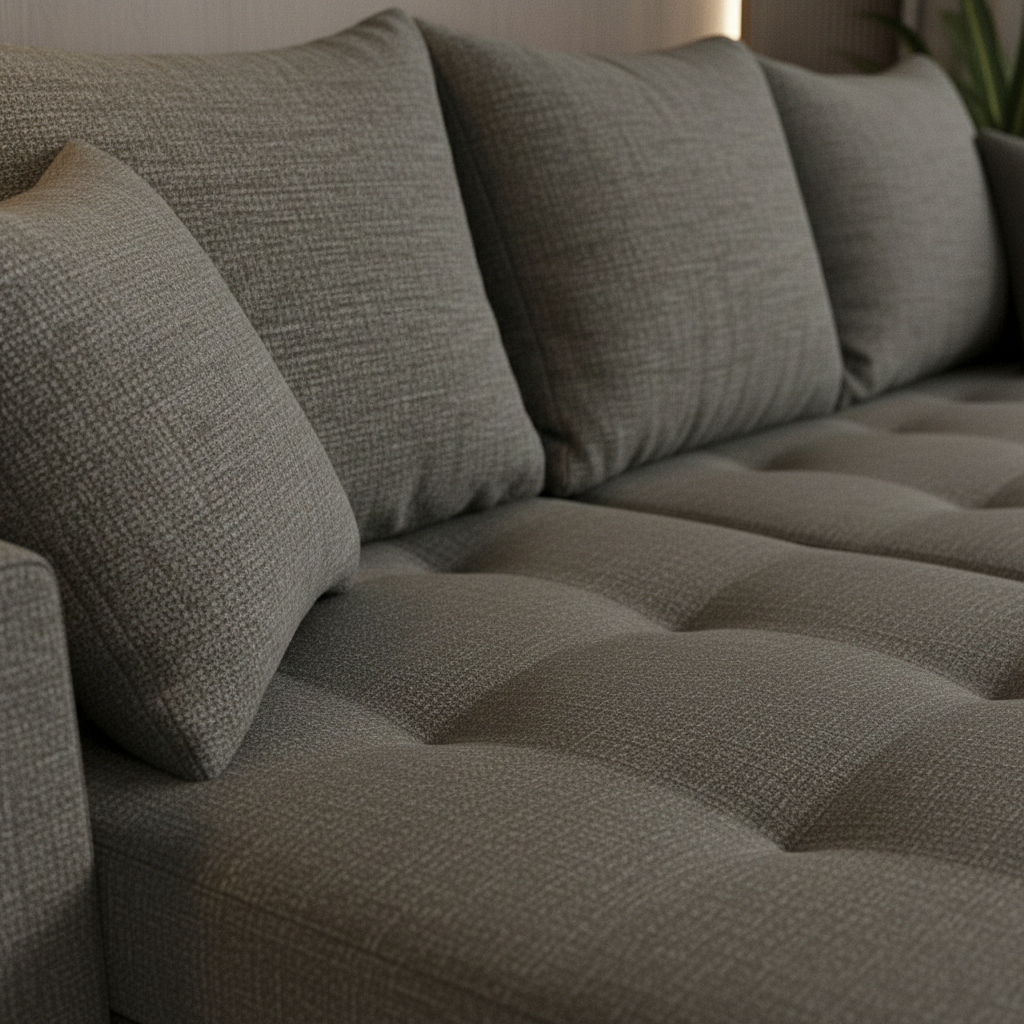 Sawana je příjemná a pevná čalounická látka s jemným melírovým vzhledem, který dodává pohovce elegantní a nadčasový styl. Vyniká vysokou odolností proti opotřebení a snadnou údržbou, takže je ideální pro každodenní používání. Bez problémů obstojí i v domácnostech s dětmi, domácími mazlíčky nebo častými návštěvami.
