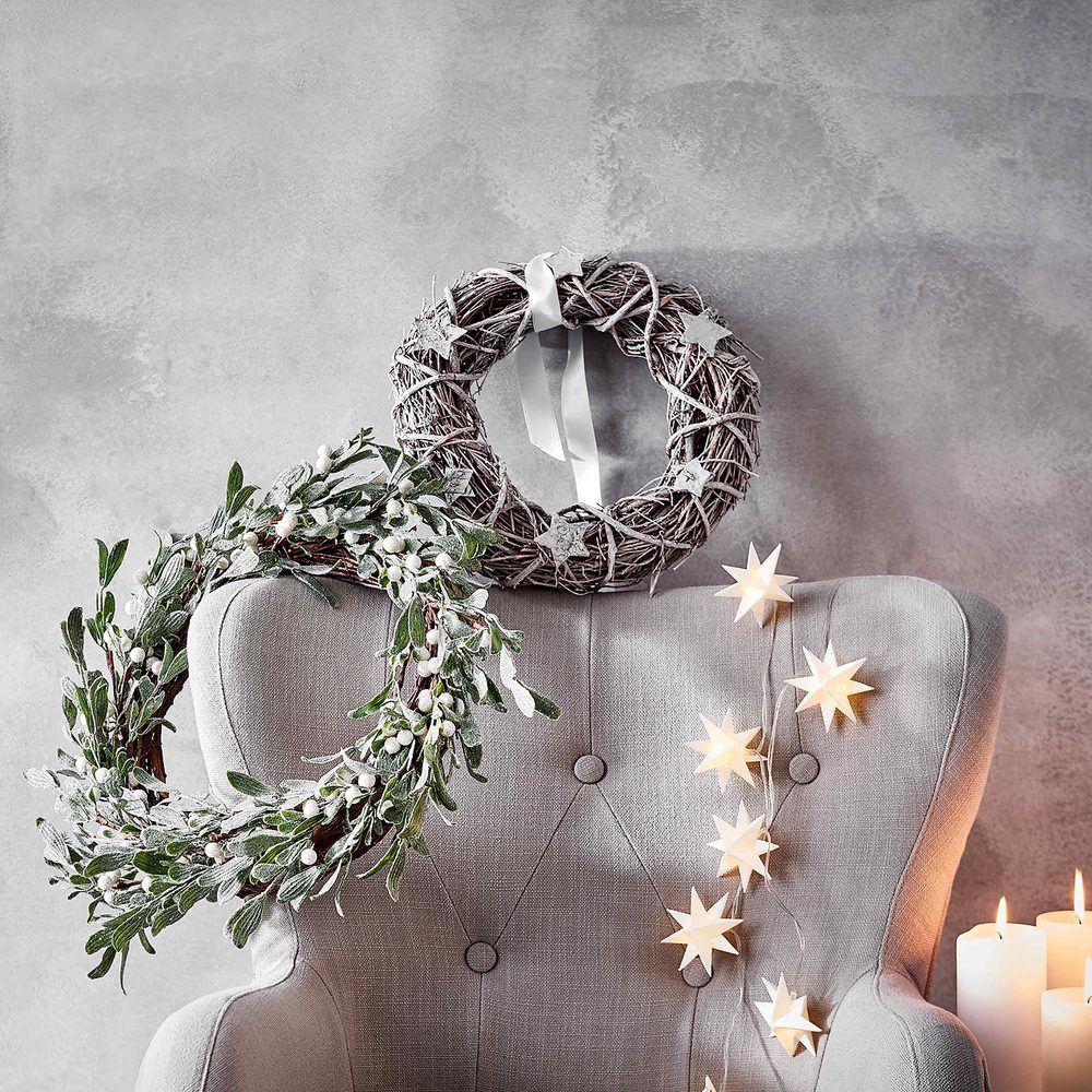 Rozměry: celková délka 165 cm, hvězdy: Š 3 x V 5 cm Materiál: papír, PVC, měď Počet žárovek: 10 Funkce časovače: ano Napájení: Baterie: 3x AA, 4,5 V, 0,3 W (nejsou součástí balení) USB kabel: 5 V, 0,4 W (součástí balení) Třída ochrany: IIIPouze pro vnitřní použití. LIKVIDACE: Tento produkt odpovídá platným evropským normám. V souladu s EU nařízením WEE (waste electrical and electronic equipment – likvidace elektrického a elektronického odpadu) nelze výrobek zlikvidovat v běžném domácím smíšeném odpadu.…