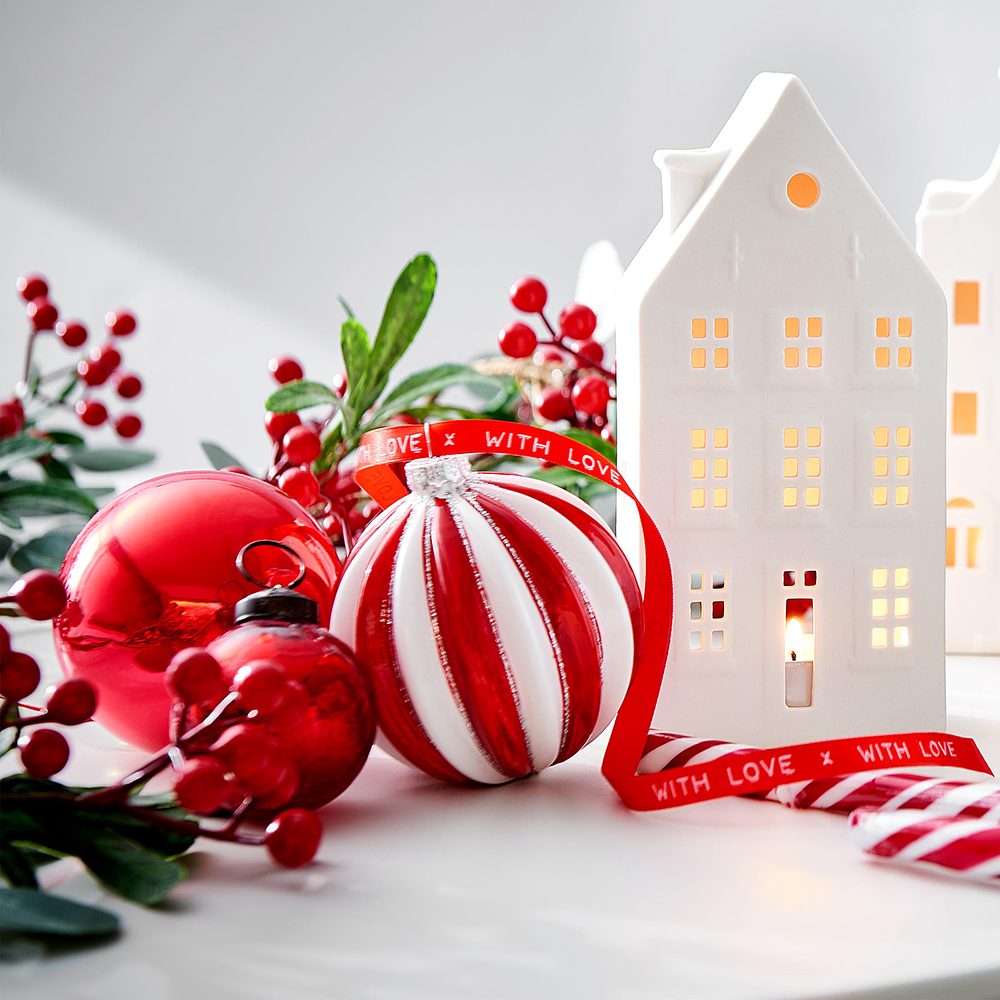 HANG ON Vánoční koule - červená/bílá