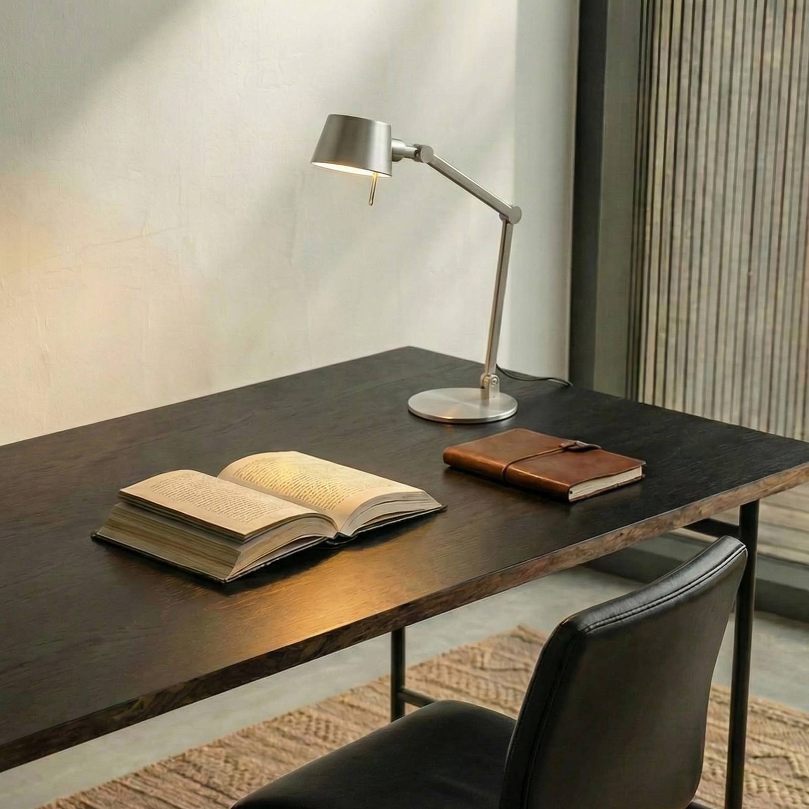 Stolní lampa Silka s flexibilním rozsahem natočení pro všestranná řešení osvětlení Stolní lampa Silka zaujme svým moderním designem a kovovým provedením v satinovaném niklovém vzhledu. Díky svému elegantnímu vzhledu se dokonale hodí do různých interiérů a představuje stylový doplněk do pracovny, obývacího pokoje nebo ložnice. Díky velkému rozsahu otáčení 330 stupňů umožňuje lampa přesné nasměrování světelného kužele, takže je vhodná jak pro soustředěnou práci, tak pro příjemné osvětlení místnosti. Kombinace funkčnosti a estetiky činí stolní lampu Silka univerzálním osvětlovacím řešením pro různé požadavky.