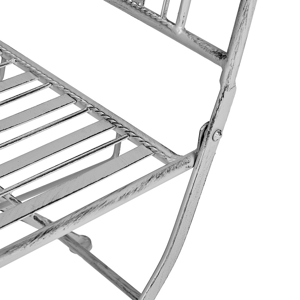 Rozměry: židle: D 41 x Š 54 x V 91 cm, stůl: průměr 70 x V 71 cm, Materiál: železo, pozinkované a práškově lakované Další informace: Výrobek je částečně odolný vůči zimě a povětrnostním vlivům, ale neměl by jim být vystaven neustále. Jako v zahradách Versailles si užíváte slunce a zpěv ptáků s krásným 3dílným zahradním nábytkem TERRACE HILL. Sada obsahuje skládací stůl a dvě skládací židle, které jsou zdobeny v romantickém stylu. Tento skládací nábytek je snadno přenosný a šetří místo, takže je ideální i…