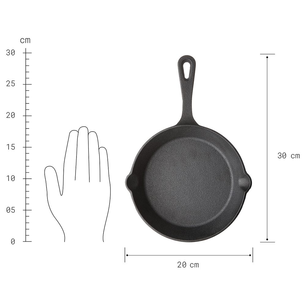 Zapuštěná vejce v pikantní rajčatové omáčce - tradiční izraelský snídaňový pokrm Shakshuka je snadná a chutná na kvalitní pánvi Shakshuka o průměru 20 cm. Odolná a robustní litinová pánev, která je vhodná i pro indukční vařič, zajišťuje rovnoměrné rozložení tepla, takže vejce odstávají šetrně a vy si můžete nastavit bod vaření, při kterém je žloutek lehce tekutý. Tradičně se litinové pánve po použití pouze vytírají a pánev Shakshuka také není vhodná do myčky nádobí.