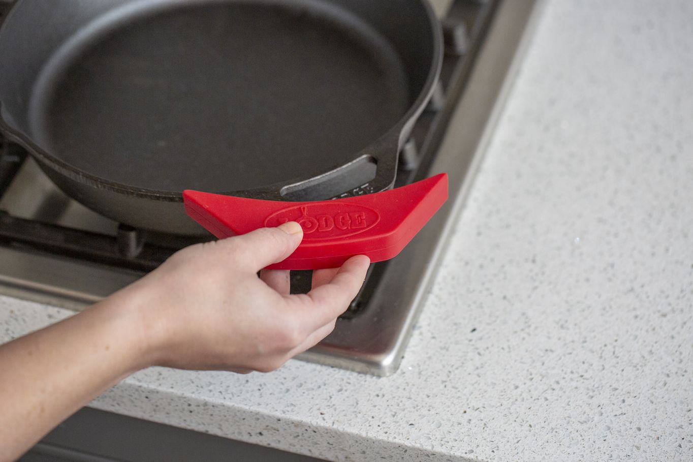 Červený ochranný silikonový návlek na madlo litinové pánve Lodge